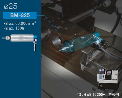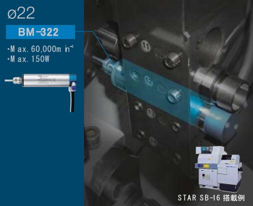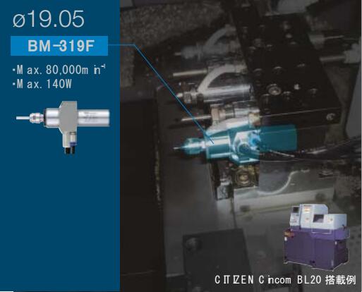 iSpeed3專為精密自動車床開發(fā)。主軸全場87.3mm,采用超小型精密控制器單元,馬達轉(zhuǎn)速可以100min-1的單位設(shè)置,實現(xiàn)微小精密切削加工。高速主軸特點:1.高性能,高效率,高精度。2.采用高精度的陶瓷軸承。3.外徑規(guī)格有Φ19.05mm,Φ20mm,Φ22mm,Φ25。產(chǎn)品:控制器單元(100V,120V,200V,220V),轉(zhuǎn)速:1000~80000min-1;輸出方式:2通道(不可同時運行);最大輸出功率:150W;定格消耗電流:0.65A;空氣消耗量:30l/min.BM-319F、BM-319、BM-320F、BM-320:主軸轉(zhuǎn)速:80000min-1;最大輸出功率:140W;主軸震動精度:1μm以內(nèi)。BM-322FL/BM-322FR,BM-322、BM-325:主軸轉(zhuǎn)速:60000min-1;最大輸出功率:150W;主軸震動精度:1μm以內(nèi)。
