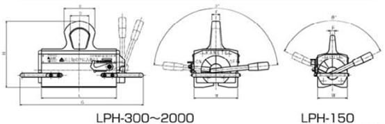 強(qiáng)力吊重磁鐵LPH系列產(chǎn)品尺寸圖: